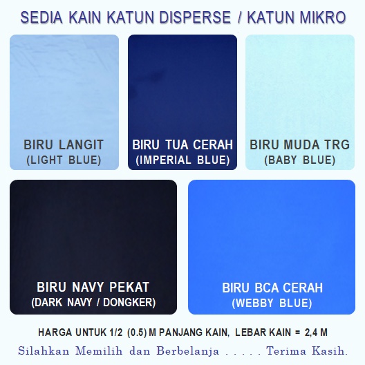 Jual Kain Katun Mikro Warna Biru Langit Biru Tua Cerah Biru Muda Terang Biru Navy Pekat Dan Biru Bca Cerah Indonesia Shopee Indonesia